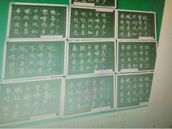 本次比赛分为硬笔书法、软笔书法和粉笔字,参赛人员为全体教师。学校统一规定内容,老师们在规定时间上交书法作品。为保证比赛公平公正,要求所有教师在背面写姓名。每项内容设一二三等奖。