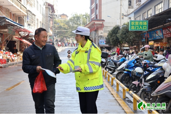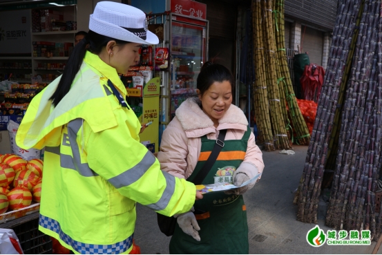 一句句暖心的叮咛,一次次真诚的提醒,让群众在买菜购物的间隙,也将交通安全知识“装”进了菜篮、“带”回了家中。