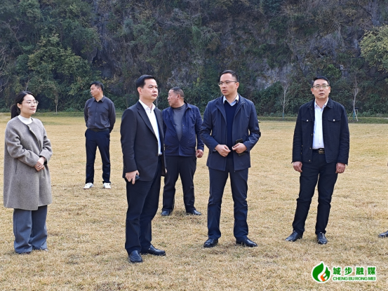 图为县委书记何德波一行实地了解湄江风景区文旅融合项目