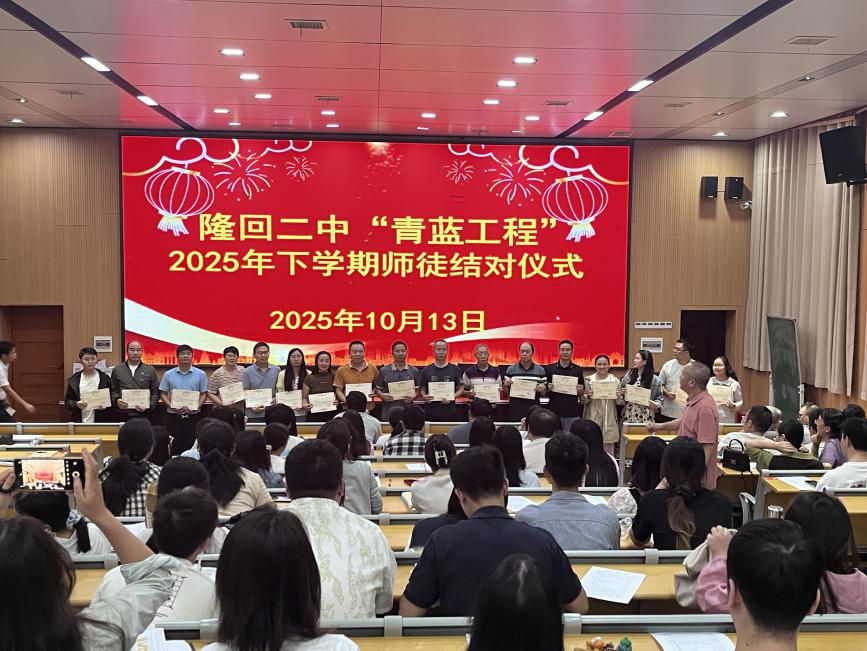 10月13日晚,隆回县第二中学举行2025年下学期青蓝工程师徒结对仪式,师徒共103位结对老师参加。