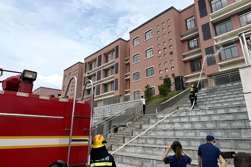 随后,市消防大队特邀宣讲员赵礼军结合校园火灾特点,为师生上了一堂消防安全课。赵礼军从火灾预防要点、规范报警流程、初期火灾扑救技巧等方面进行详细讲解,还特别邀请学生代表上台,手把手指导灭火器的正确使用方法。讲座结束后,按照演练预案,校园指定区域燃起模拟火灾,市教育局协调调度的消防车迅速抵达现场,消防队员熟练操作水炮对准火源喷射,短短几分钟内成功扑灭模拟火灾,让师生直观感受专业消防救援流程,进一步夯实了安全育人的工作目标。