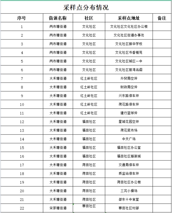 1、大禾塘街道:衡宝路以北、昭阳大道以南、建设路以西、金龙大道以东;2、两市塘街道:人民路以北、东风以南、解放路以西、金龙大道以东;3、宋家塘街道:邵东大道以北、昭阳大道以南、公园路以西。采样点地址明细表附后。