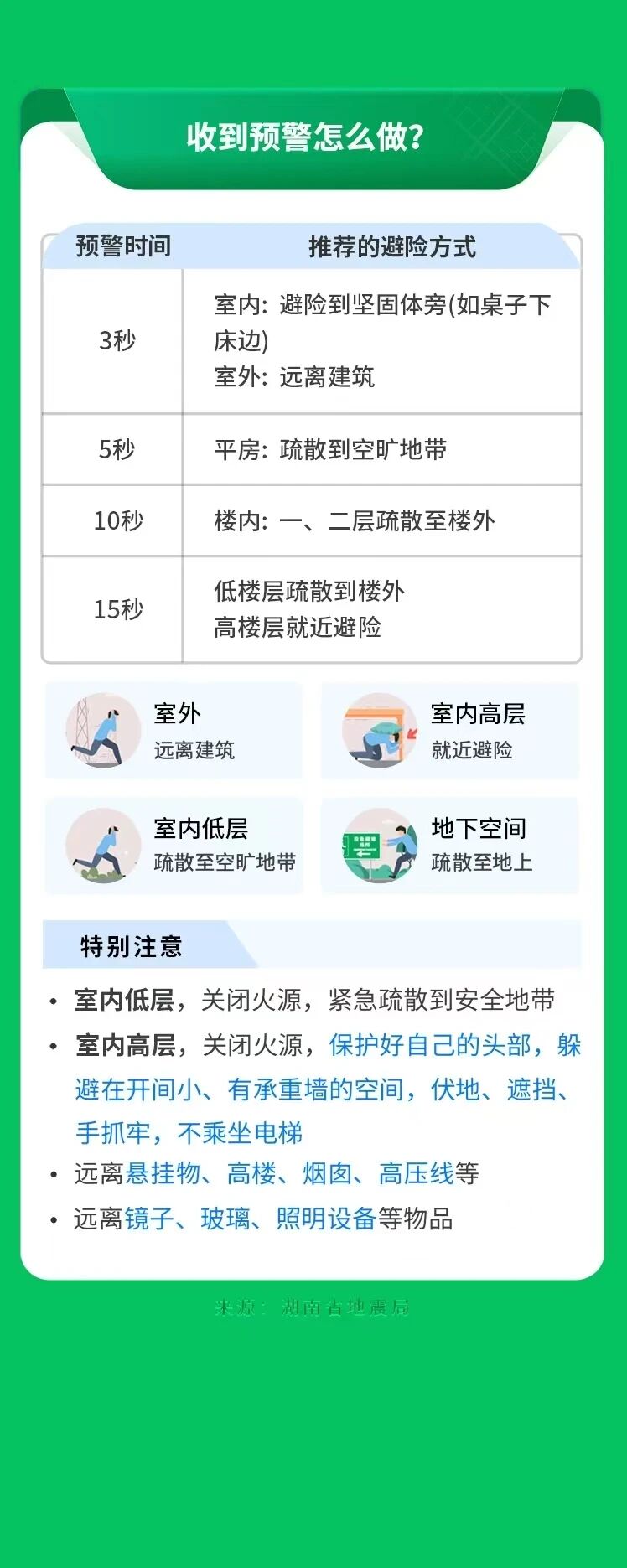 温馨提示:公众可关注政府有关部门发布的权威信息,科学辨别、自觉抵制谣言传播。如需获取地震预警信息,可关注湖南地震台微信小程序,设置接收地震预警信息。
