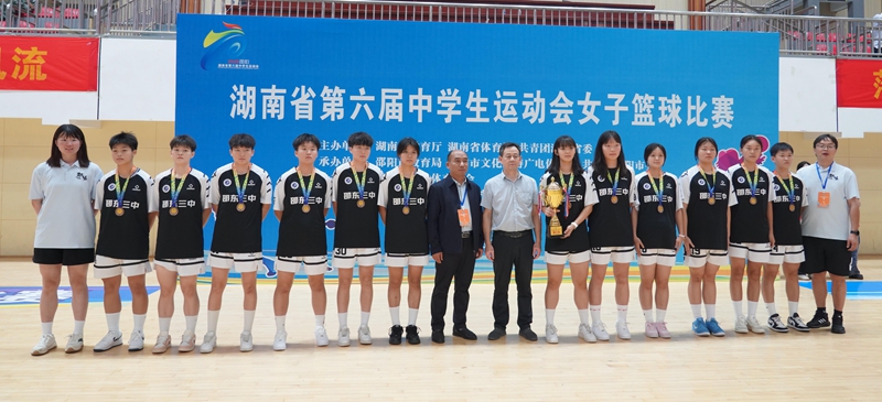 2025年10月9日起,湖南省第六届中学生运动会篮球比赛在邵阳市举行。其中,女子篮球比赛吸引了14支代表队参加。以邵东三中女篮原班人马出战的邵阳市代表队,在领队刘桂林、教练员龙金良和赵鑫的带领下参赛。
