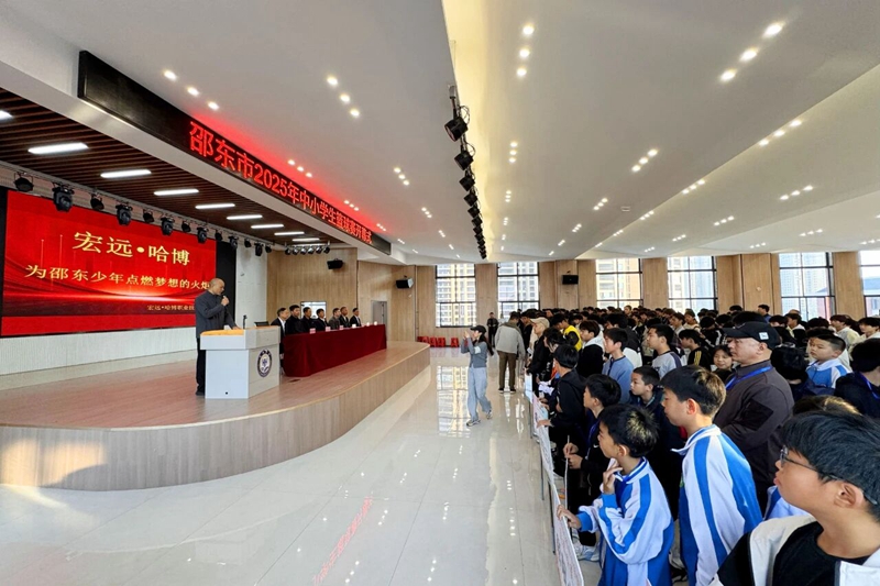 本网讯(彭松柏  报道)11月15日,邵东市2025年中小学生篮球比赛在宏远哈博职业中专学校篮球馆鸣哨开赛。市教育局党组书记、局长曾超,党组副书记、副局长李泽成等出席开幕式。