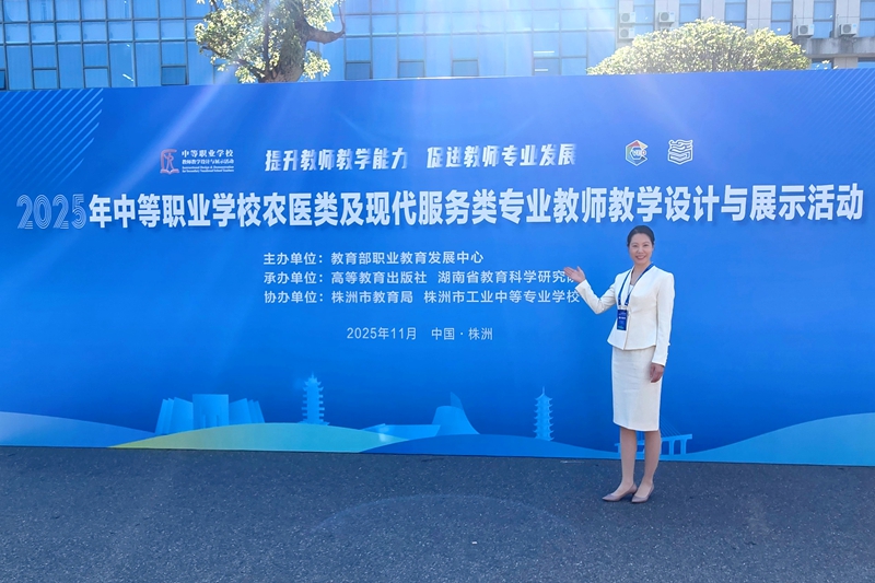 本网讯(通讯员  曾姣娣​)近日,在教育部职业教育发展中心主办的 “2025 年中等职业学校农医类及现代服务类专业教师教学设计与展示交流活动” 中,邵东市职业中专学校刘淑林老师凭借扎实的专业功底、精湛的教学技艺与创新的教学设计,荣获 “优质案例展示者” 称号(国家级二等奖),充分展现了该校教师卓越的教学风采与育人实力。​