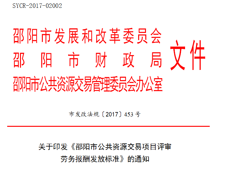 邵阳市公共资源交易项目评审劳务报酬发放标准