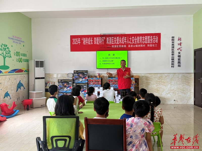 9月13日上午,在邵阳市双清区民政局指导下,双清区和谐社工中心组织社工、志愿者在高崇山镇浏阳村启动“湘伴成长邵爱同行”2025双清区关爱未成年人项目并开展首场安全教育志愿服务活动。